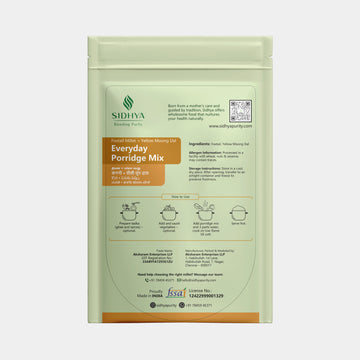 Start your day with Sidhya’s Everyday Porridge Mix — a nourishing blend of millets designed for your busy mornings. Light yet nutrient-rich, it delivers a creamy, wholesome breakfast in minutes. Ready-to-cook and preservative-free, it takes away the guesswork of adding millets to your meal, making healthy eating simple and convenient. Packed with fiber, minerals, and antioxidants, it supports digestion, sustained energy, and overall health.