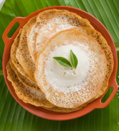 Soft, lacy millet appams ideal for breakfast or dinner.