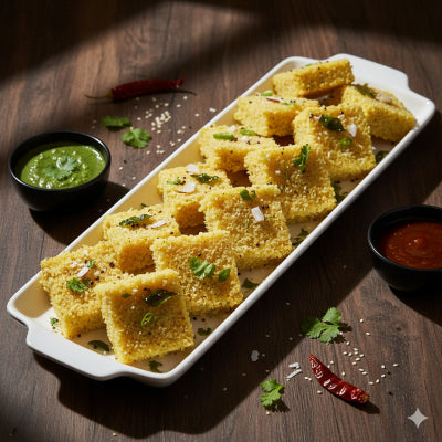 Soft and spongy millet khaman, a light and tasty snack.