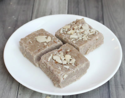 Soft, melt-in-mouth millet barfi, sweet and nourishing.