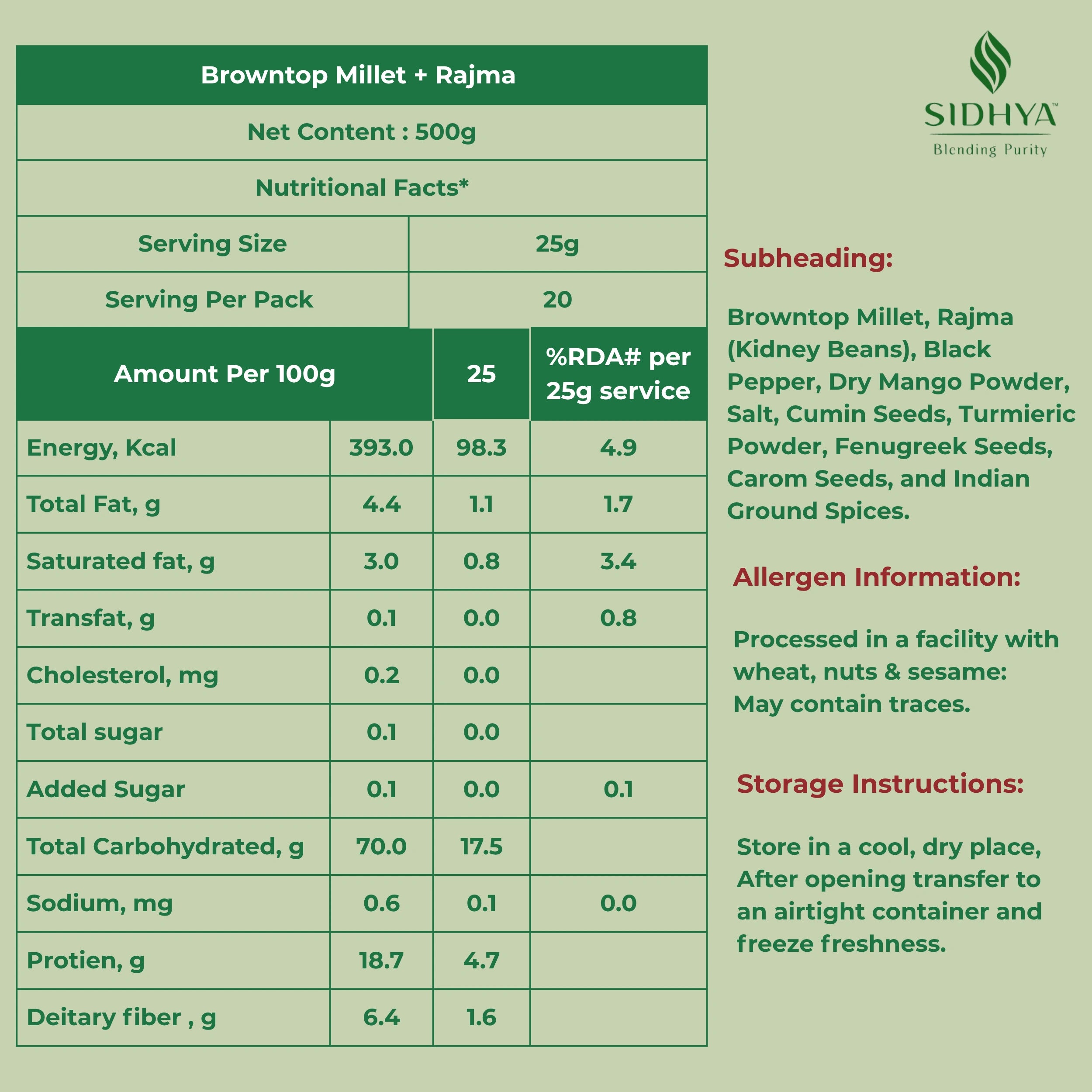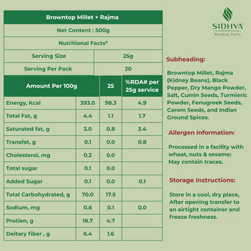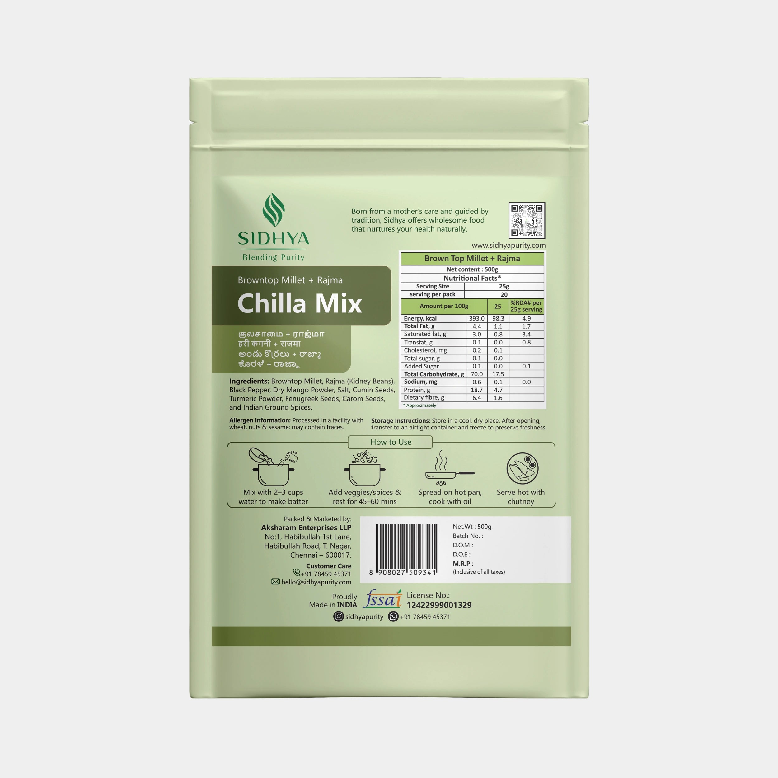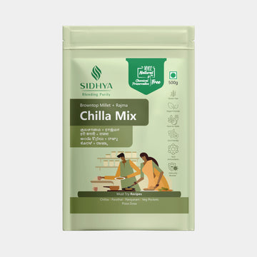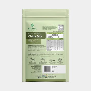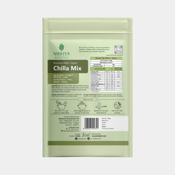 Sidhya Chilla Mix is your quick, wholesome solution for healthy meals on the go. Made with pure millets, pulses and natural ingredients, it is rich in protein, fiber, and nutrients to keep you energized throughout the day. Simple to prepare, preservative-free, and ready-to-cook, Sidhya Chilla Mix makes healthy eating easy without compromising on taste or nutrition.