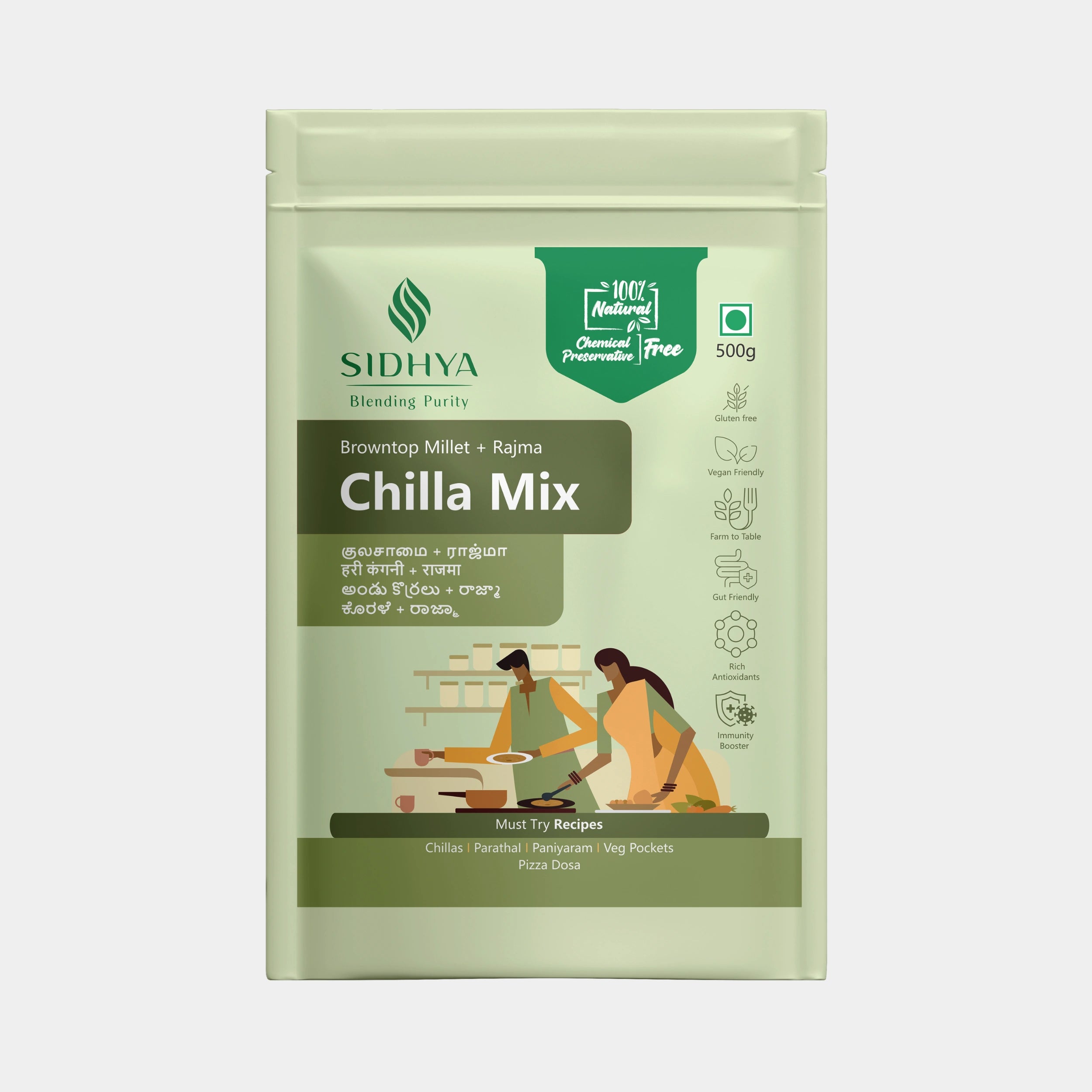 The Sidhya Way: We prepare our chilla mix with fresh, natural ingredients, keeping it preservative-free and ready-to-cook — so you enjoy a healthy, wholesome meal in minutes without any compromise.