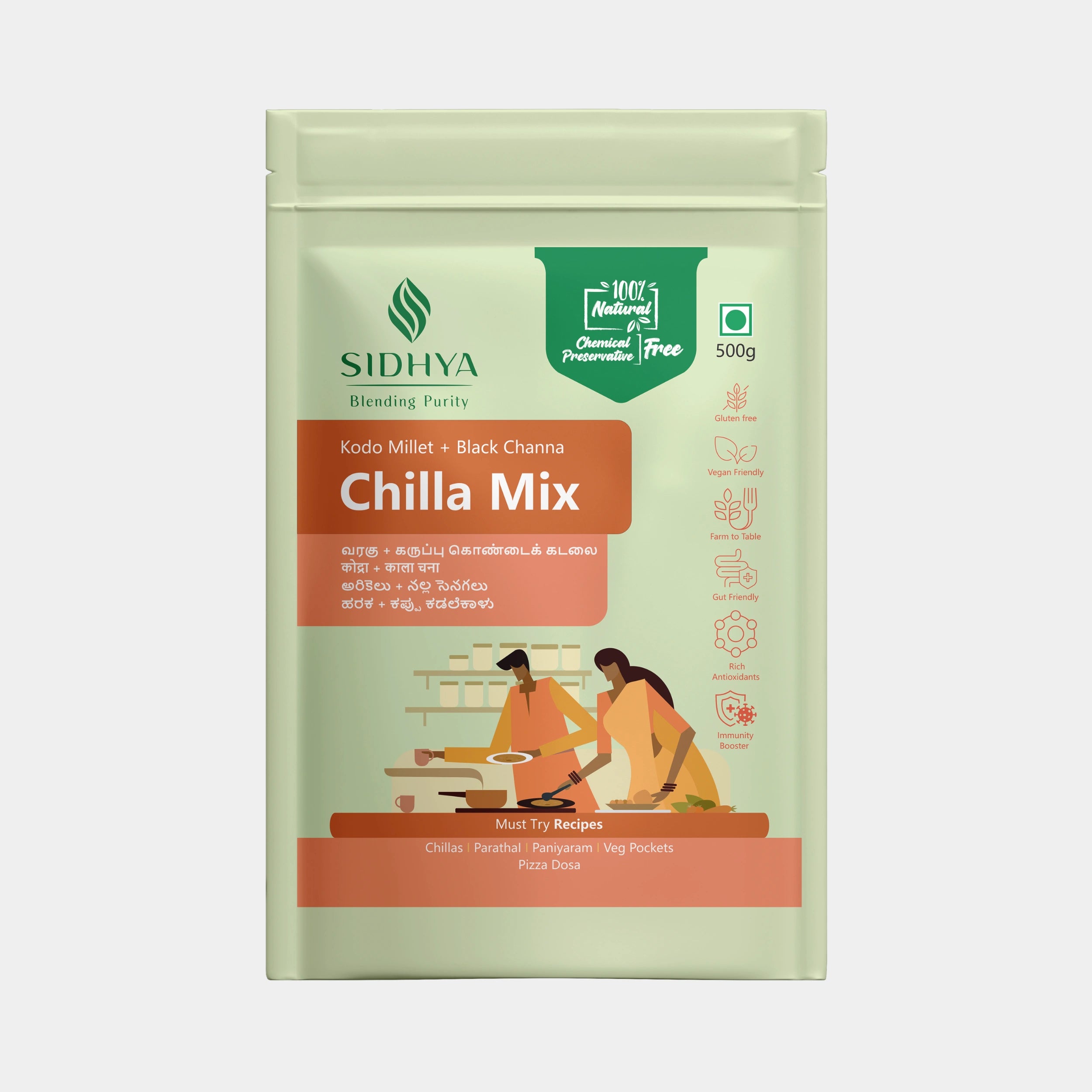 Sidhya Chilla Mix is your quick, wholesome solution for healthy meals on the go. Made with pure millets, pulses and natural ingredients, it is rich in protein, fiber, and nutrients to keep you energized throughout the day. Simple to prepare, preservative-free, and ready-to-cook, Sidhya Chilla Mix makes healthy eating easy without compromising on taste or nutrition.