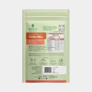 Our chilla mix contains a wholesome blend of millets and lentils, along with natural spices for taste and nutrition.