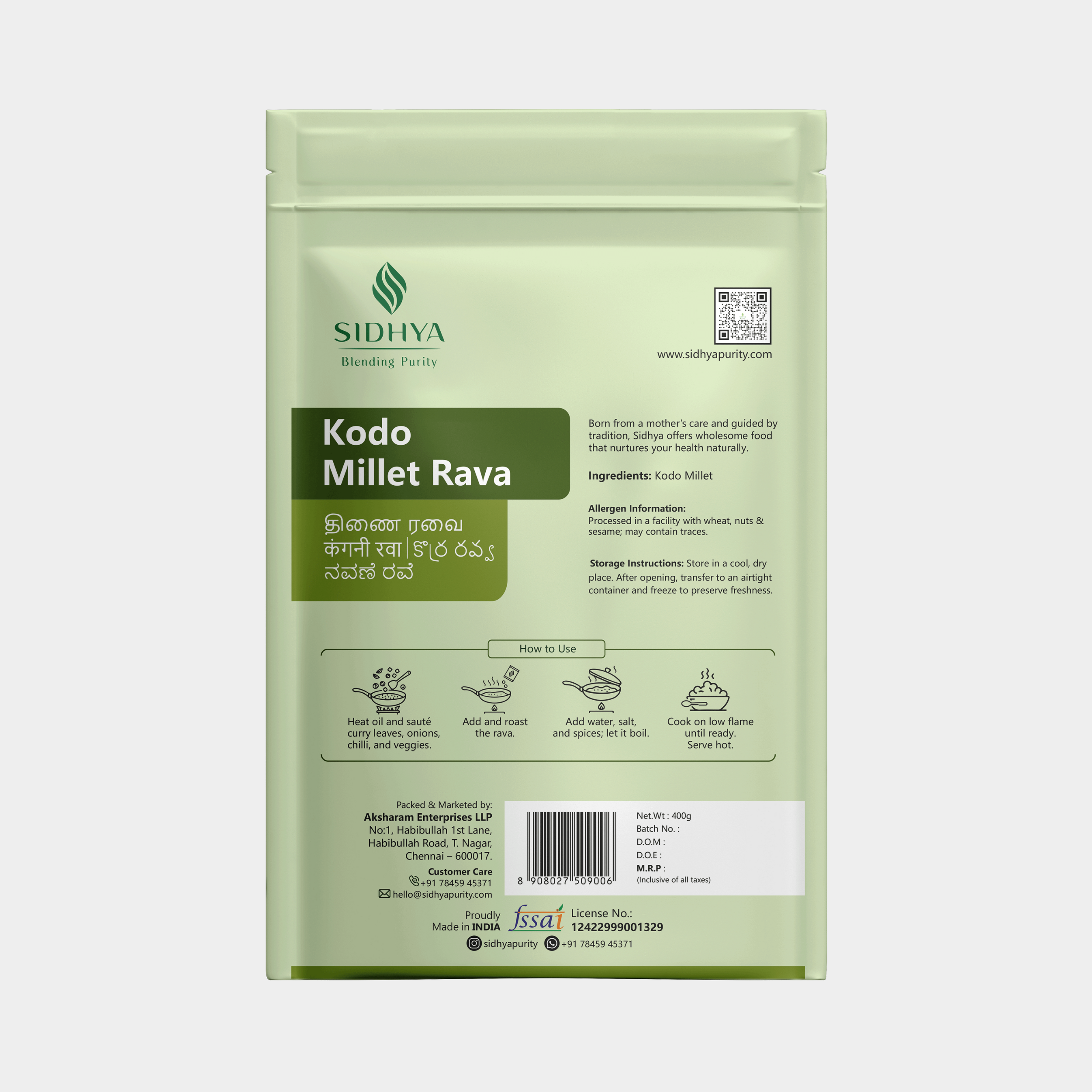 The Sidhya Way: We soak and sun-dry the millets before carefully processing them into rava. This ensures they remain unpolished, nutrient-rich, and naturally flavorful while cooking to perfection in every dish.