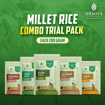 Sidhya’s Millets are nature’s ancient superfoods, packed with high nutrition and rich heritage. Sourced with care, they are naturally gluten-free, rich in fibre, and loaded with essential minerals and antioxidants. Perfect for daily meals, Sidhya Millets support digestion, energy, and overall well-being while preserving traditional Indian eating practices. They bring wholesome goodness to your table while honoring the time-tested wisdom of ancient grains.