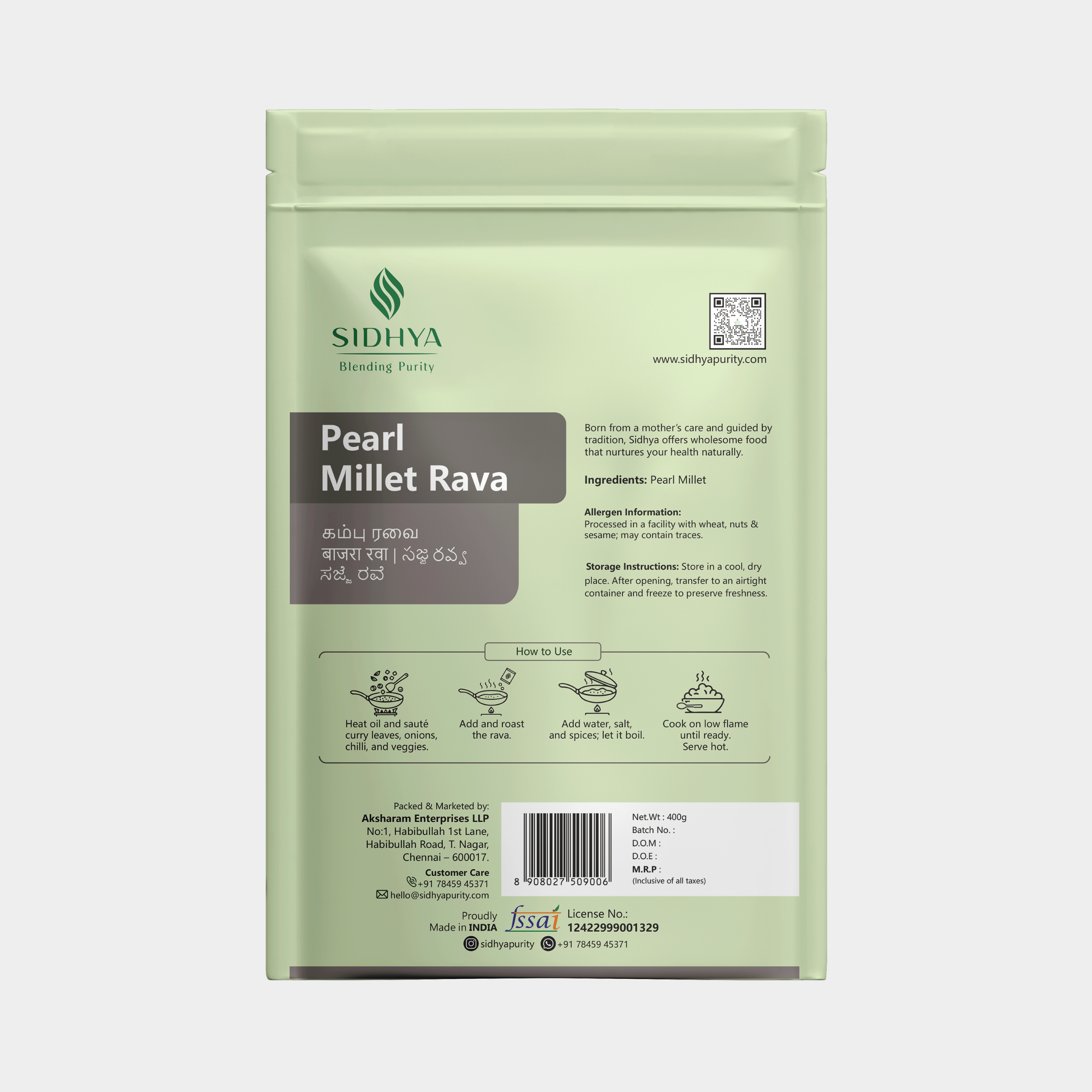 The Sidhya Way: We soak and sun-dry the millets before carefully processing them into rava. This ensures they remain unpolished, nutrient-rich, and naturally flavorful while cooking to perfection in every dish.