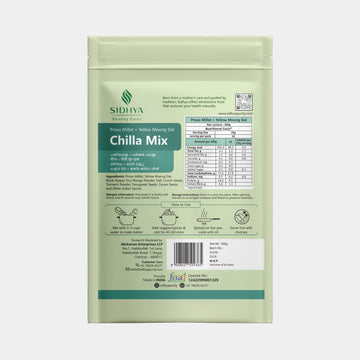 Our chilla mix contains a wholesome blend of millets and lentils, along with natural spices for taste and nutrition.