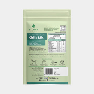 The Sidhya Way: We prepare our chilla mix with fresh, natural ingredients, keeping it preservative-free and ready-to-cook — so you enjoy a healthy, wholesome meal in minutes without any compromise.