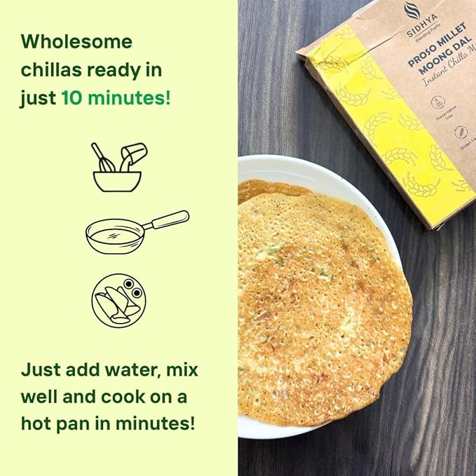 The Sidhya Way: We prepare our chilla mix with fresh, natural ingredients, keeping it preservative-free and ready-to-cook โ€” so you enjoy a healthy, wholesome meal in minutes without any compromise.